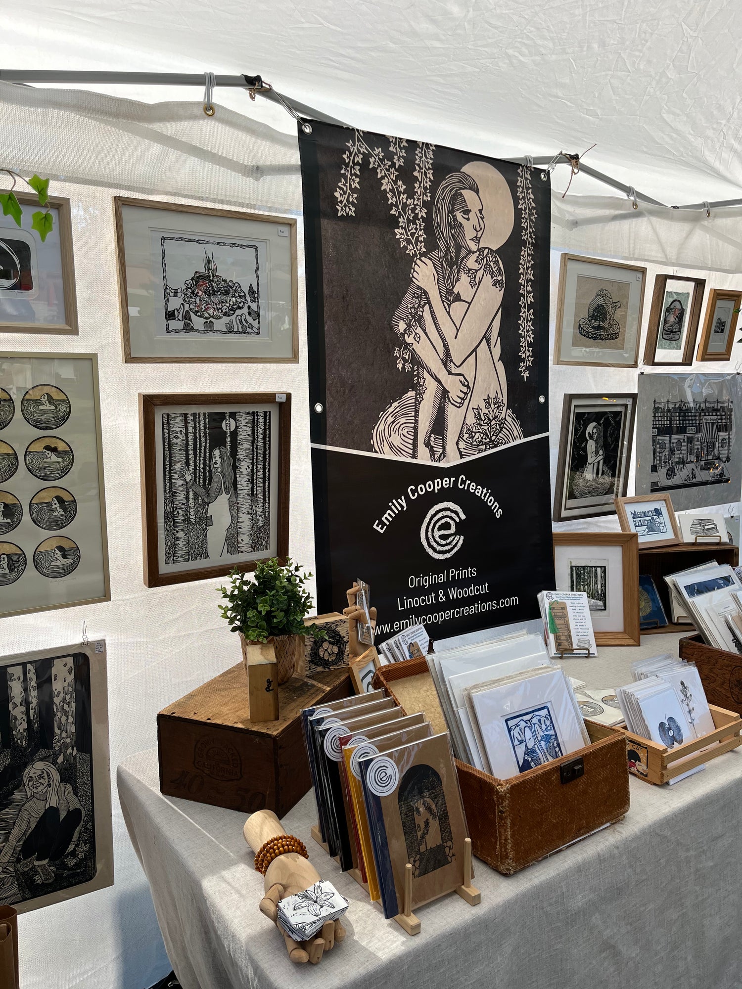 Emily is a self-taught artist specializing in relief printmaking. Her inspiration comes from the beauty of nature and the human experience. Print ideas arise on hikes, while people watching, or from imagery described on book pages. She works full-time in her home studio in Cincinnati, Ohio.