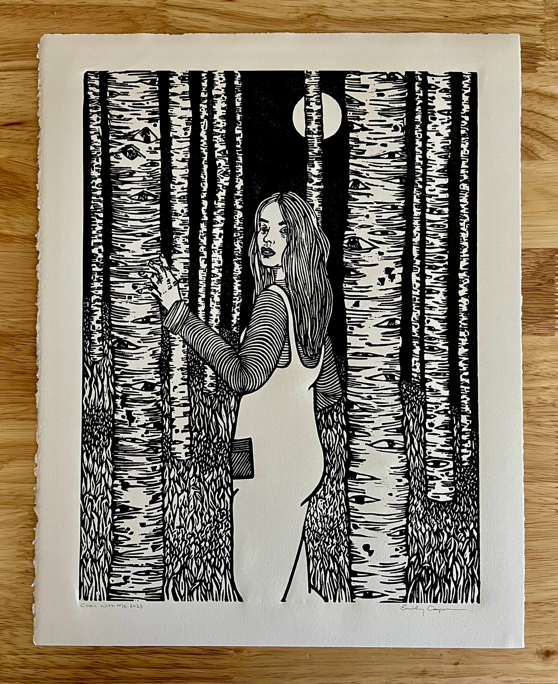 This is an open edition linoleum block print that comes signed with the title written at the bottom of the print. It was hand-printed on 100% cotton, acid-free Stonehenge paper in Cincinnati, OH in Emily's studio. The paper measures 11"x14" (27.5x35 cm). Because each print is printed individually, there may be subtle differences in ink coverage compared to what is seen on the product image. This means you are getting a completely original print as it was made with human hands and not by a machine.