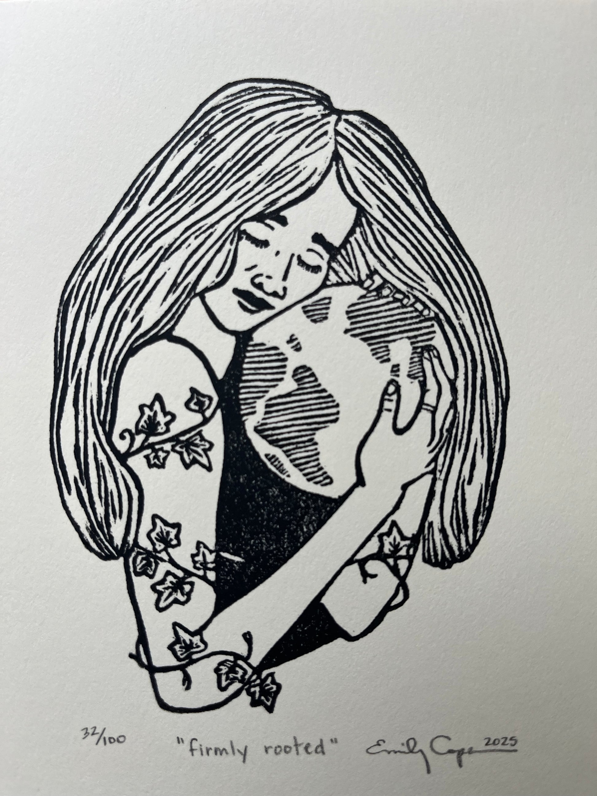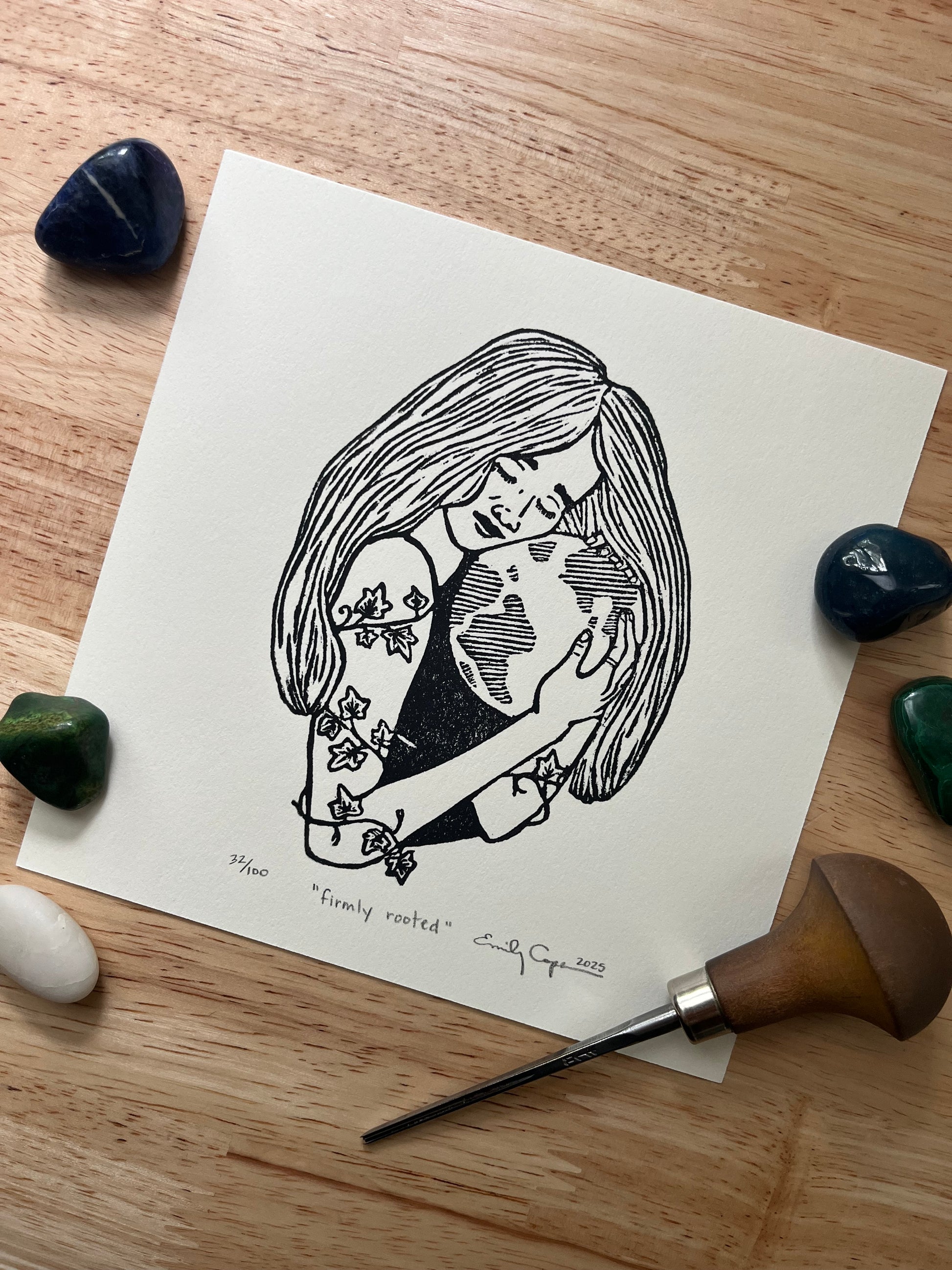 “Firmly rooted” limited edition linoleum block print- earth lover art, grounded print