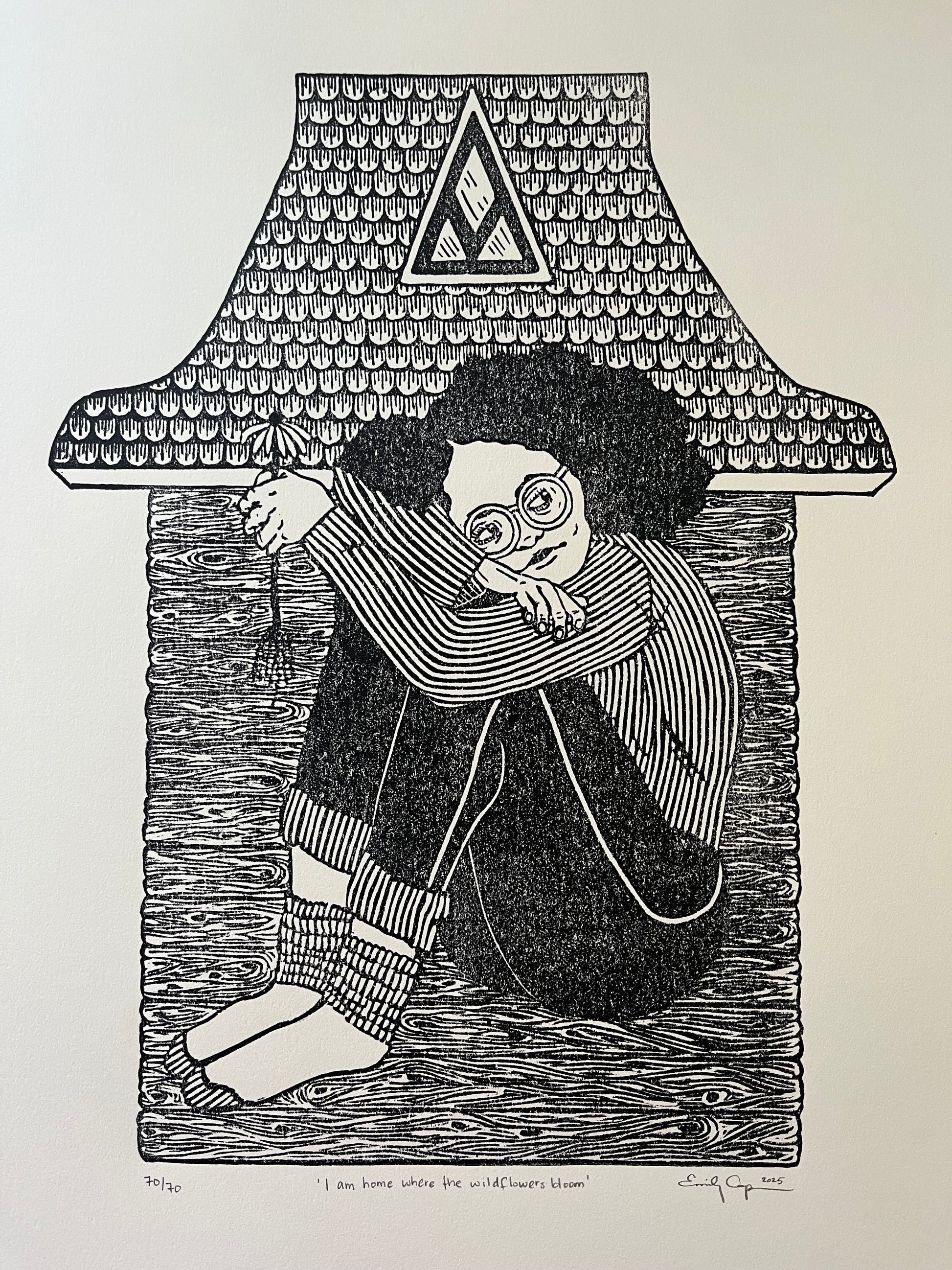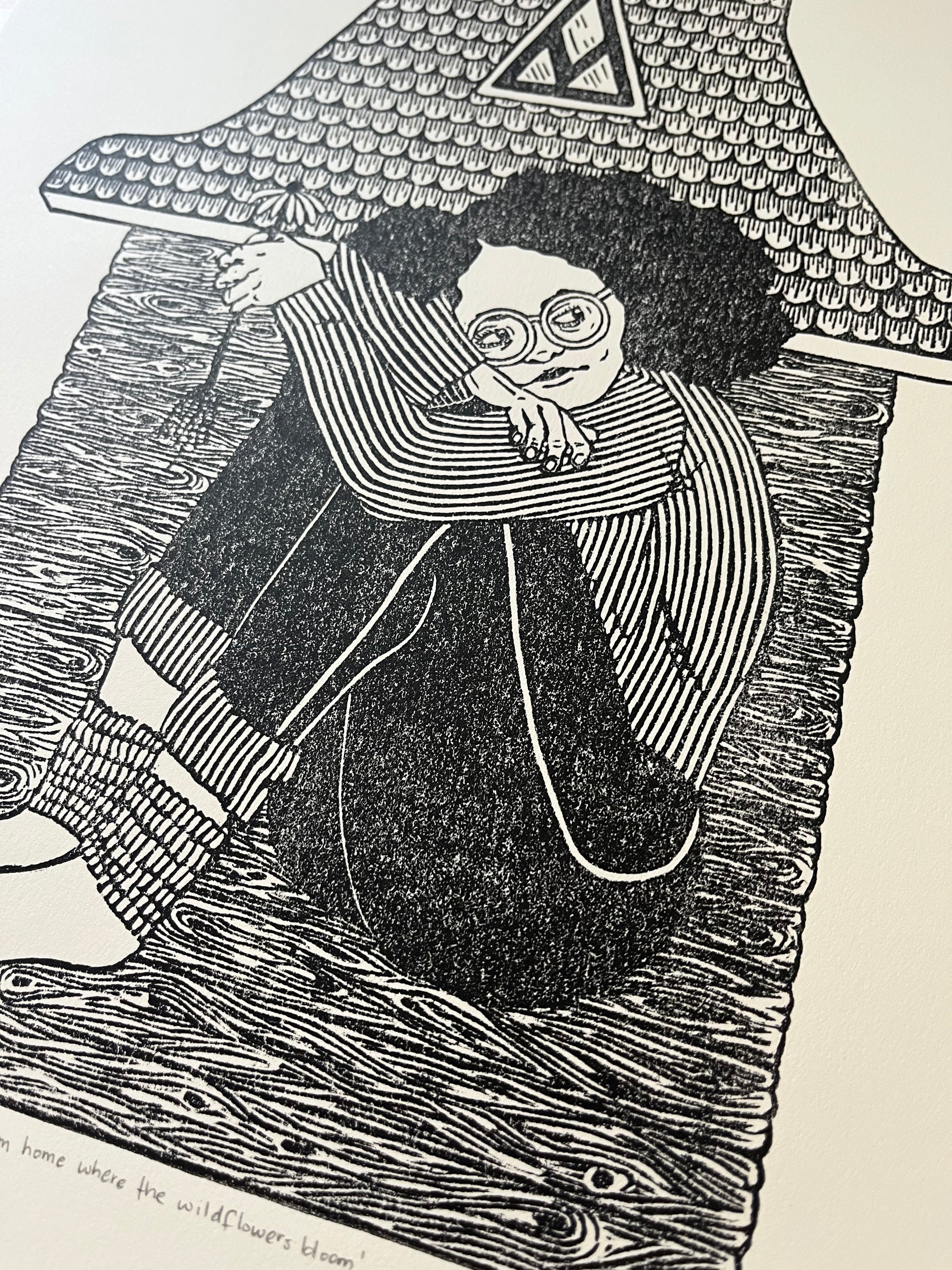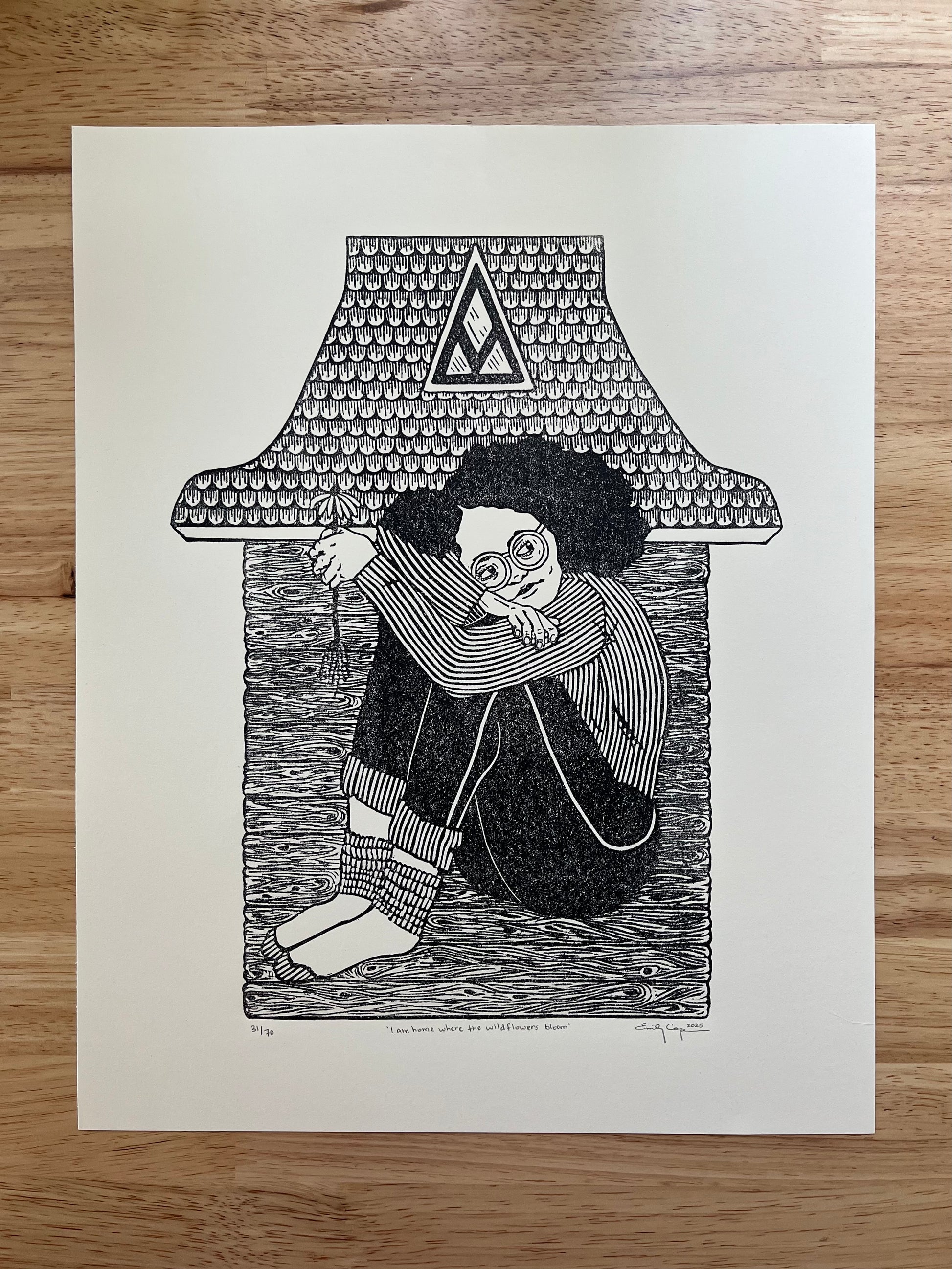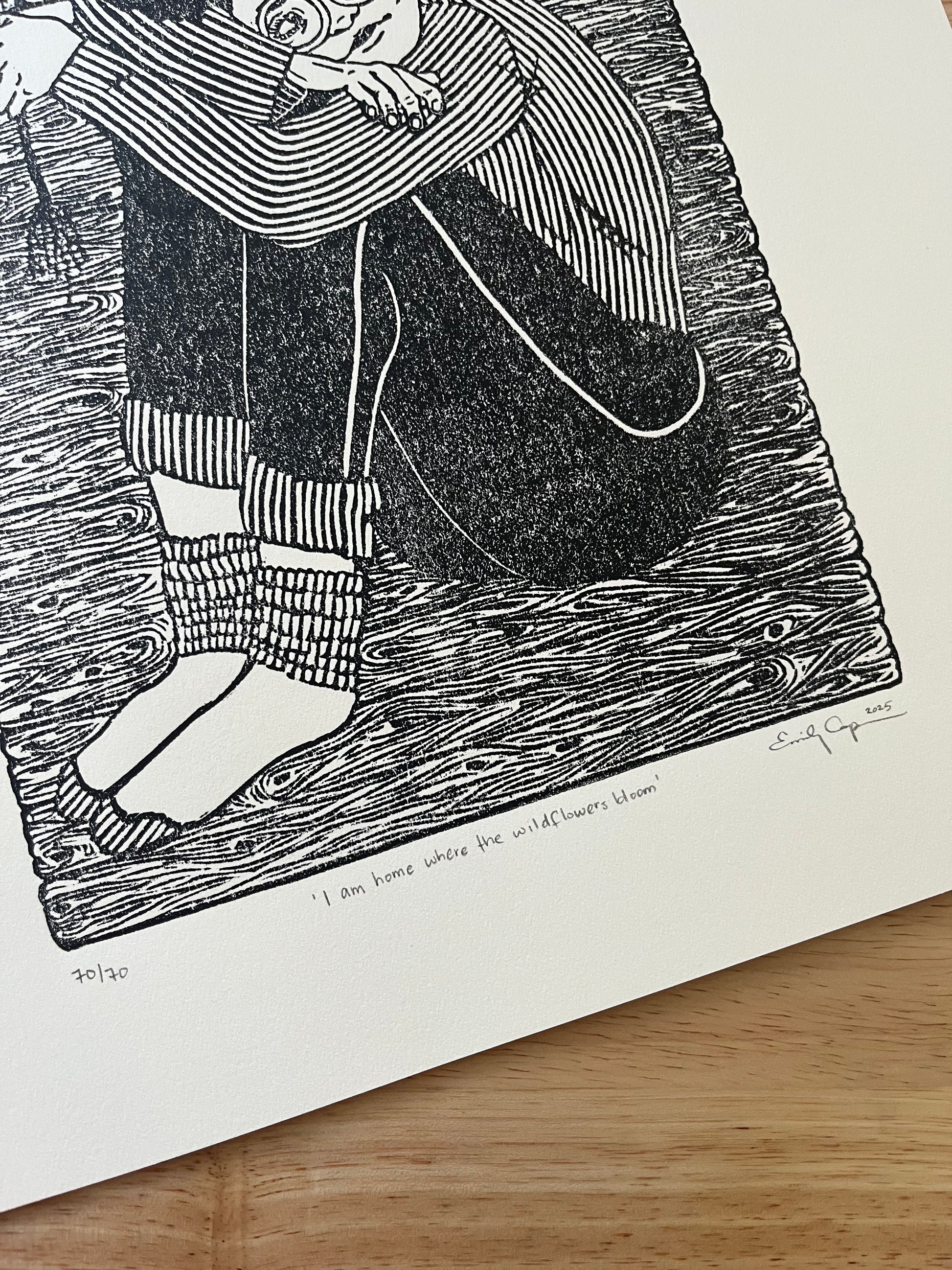 “I am home where the wildflowers bloom” Limited Edition Linoleum Block Print