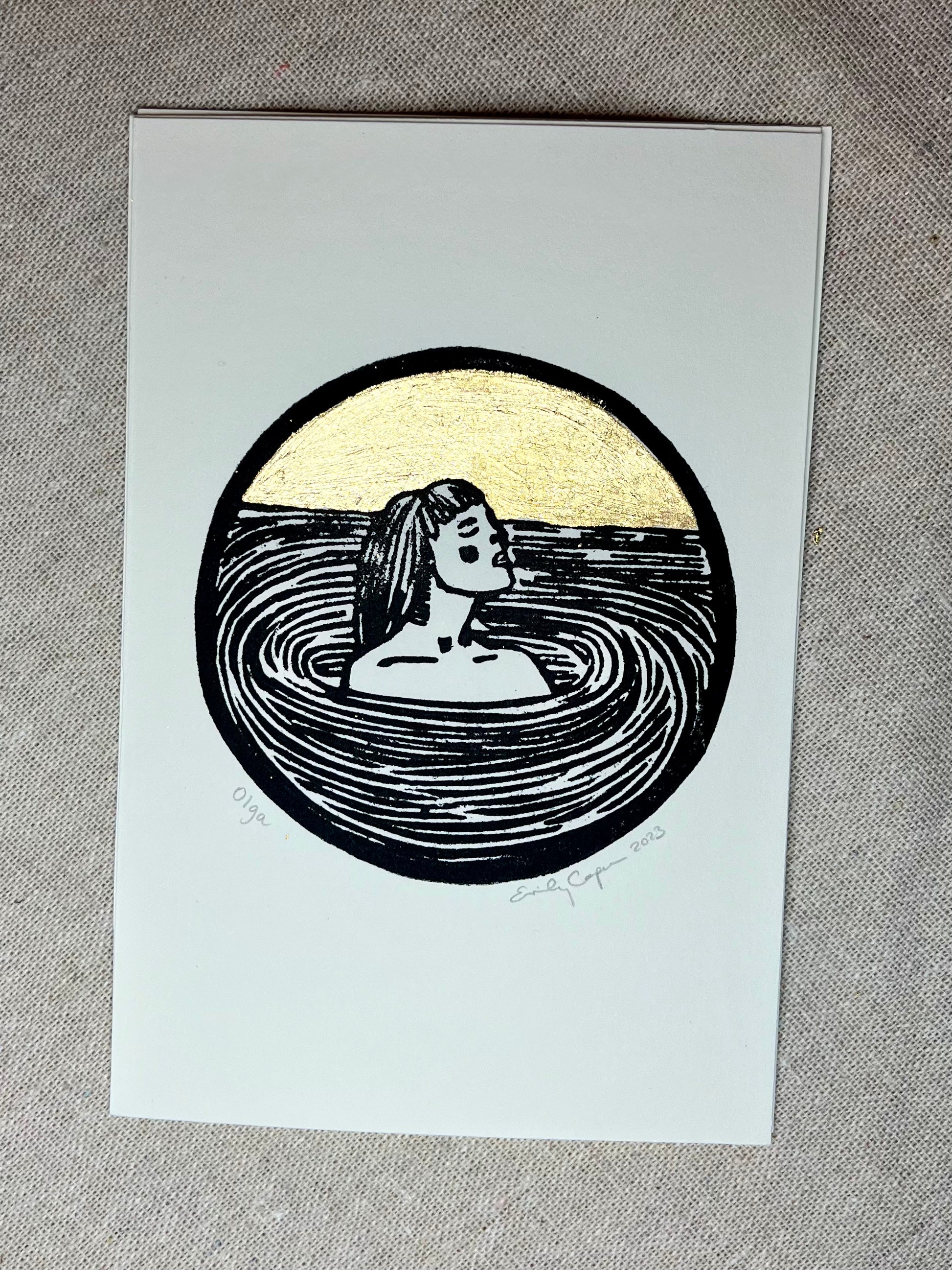 "Olga" Individual Gold-Leafed 4"x6" Linoleum Block Print