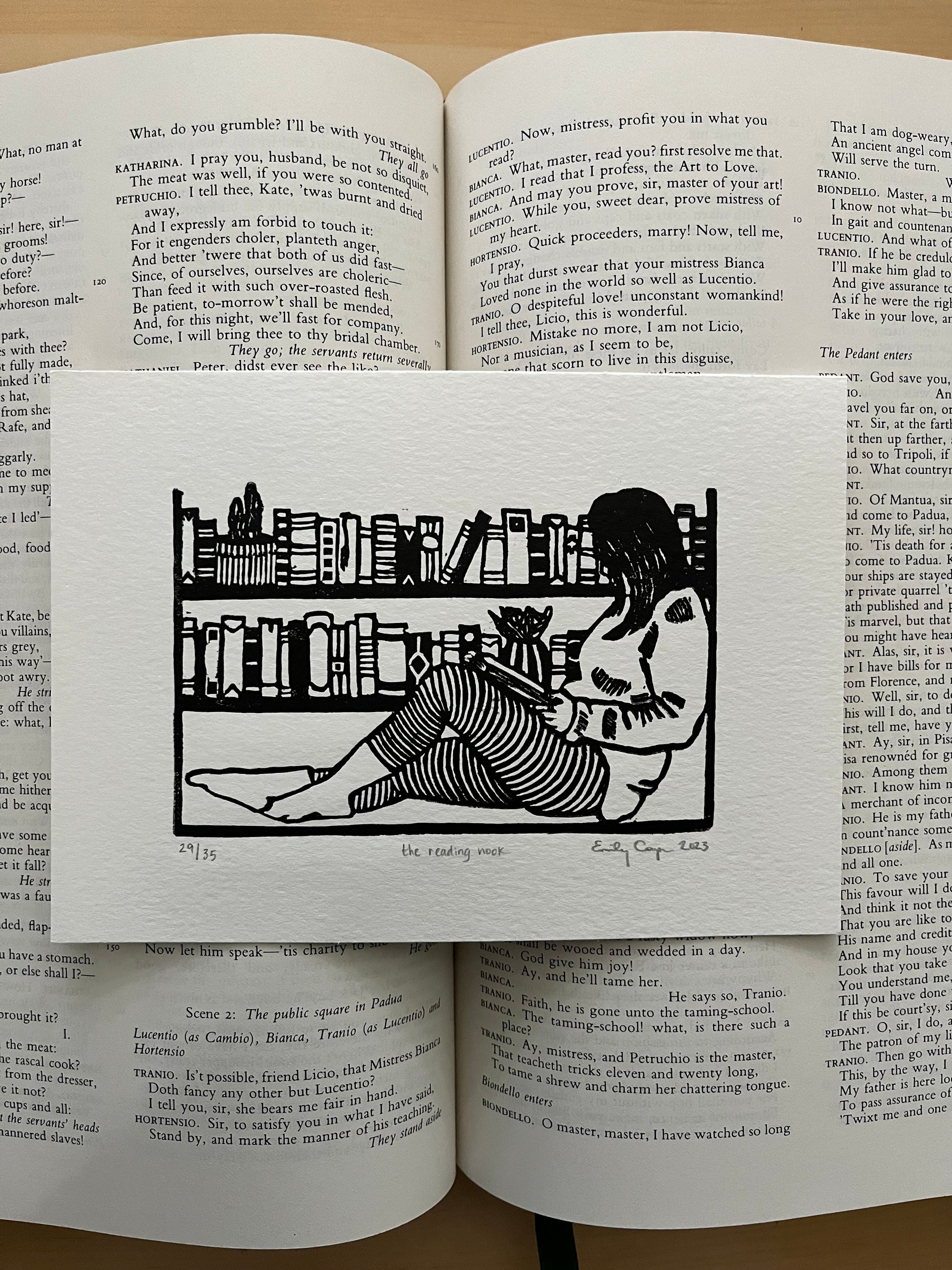 'The Reading Nook' Limited Edition Linoleum Block Print