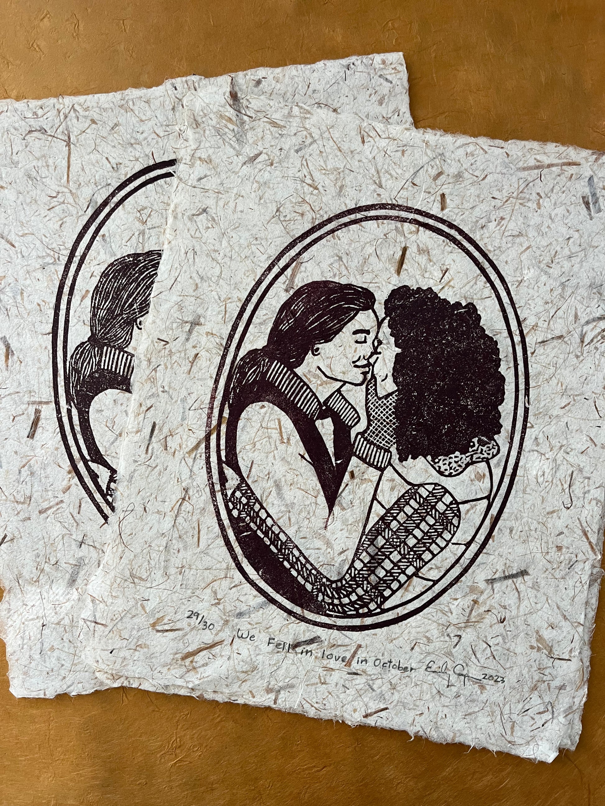 "We Fell in love in October" Limited Edition Linoleum Block Print